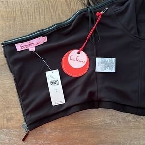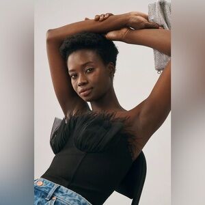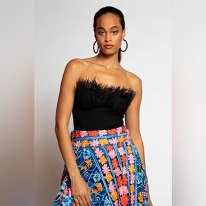 Eva Franco Strapless Tulle Corset Top Feathers Black NWT