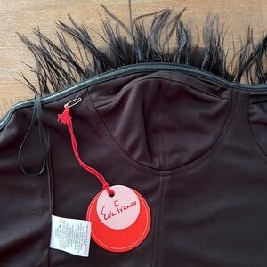 Eva Franco Strapless Tulle Corset Tube Top Feathers Black NWT
