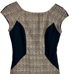 Eva Franco Tweed Sheath Cap Sleeve Dress Size 4 Black Side Panels