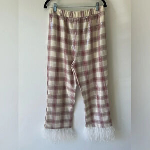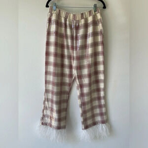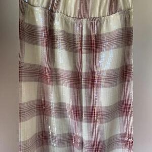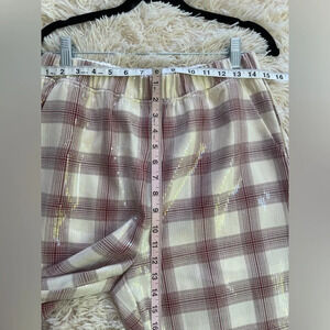 Eva Franco Wide Leg Pants plaid High-Rise Sequin Feather Pockets Elastic Waist S