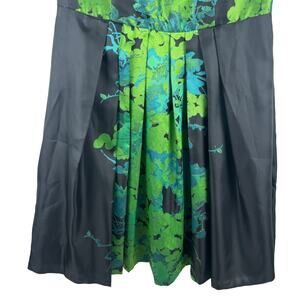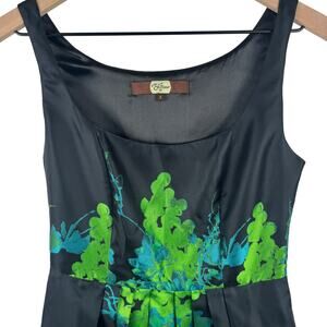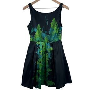 Eva Franco Womens Fit Flare Dress Size 2 Black Green Floral Sleeveless USA Made