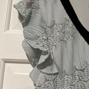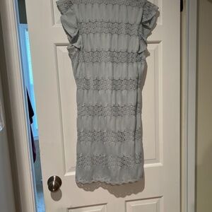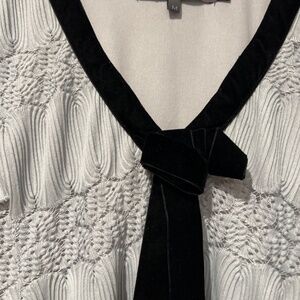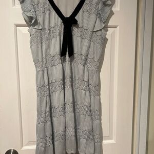 Powder blue. Lined. Flutter sleeves. Black velvet bow. Size medium.