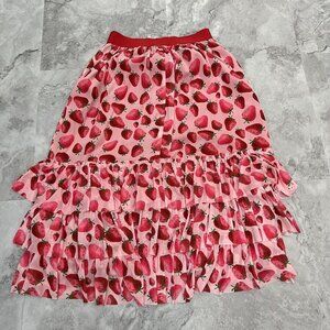Eva Franco for Anthro Strawberry Print Tiered Midi Skirt Size XSmall XS