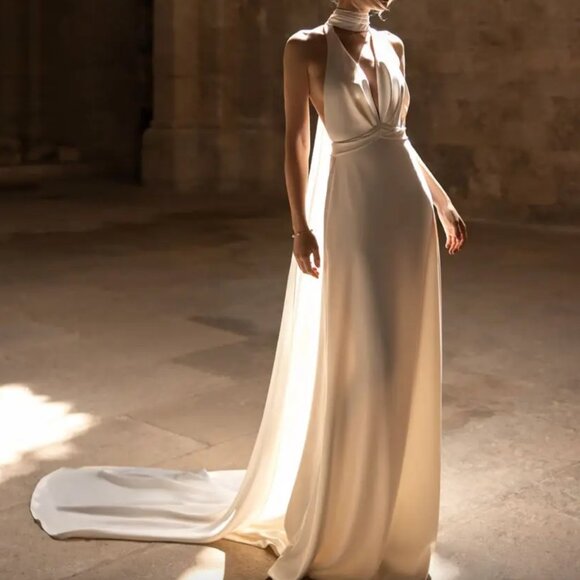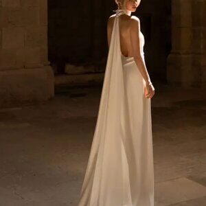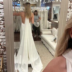 I did not end up wearing this for my wedding. It's a brand new size 12 wedding gown. I am 5'9" and 145 lbs. this dress has not been altered to me.