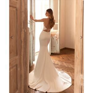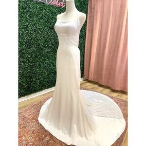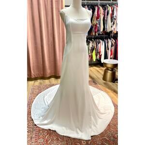 Eva Lendel Solar Satin Wedding Dress Simple Modern Ivory Sz EU 46 US 12-14