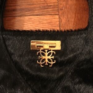 Lena Erziak Large Black Fur Shoulder Bag with Gold Hardware. Autographed on the interior pocket by Eva Longoria. Frame interior with Gold Hardware. This bag was won at a charity auction. Fabulous bag, and a unique and rare item for a fan of Eva Longoria! Brand New and Never Worn. Measuring 17" (W) x 12" (L) not including shoulder strap. Made in Italy. Please feel free to ask any questions about this rare item.