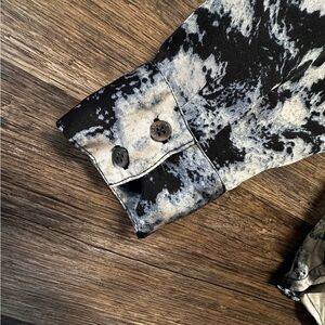 This top features a striking black and white design, offering a modern twist on the classic button-down style. Crafted from lightweight fabric, it ensures comfort and breathability for any occasion.