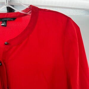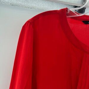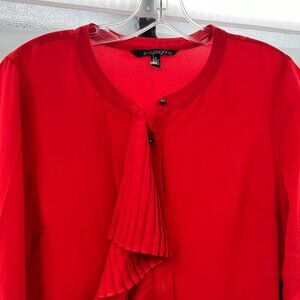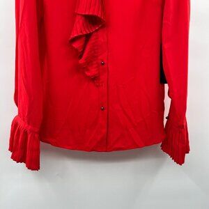 Eva Longoria Button Up Blouse Pleated Ruffle Red Size Small New