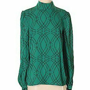 NEW WITH TAGS. Eva Longoria for The Limited top / shirt. Emerald green blouse with black dotting detail. Size Medium. 100% Polyester. Perfect new condition. Fun little puff shoulders and keyhole detail on the back, with two buttons. Smoke free and immaculate home. Bundle to save. Don't hesitate to reach out if you have questions!