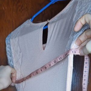 Ex: Fits cozy 5' 5" medium person , Bust 40", Band 33", Waist 36", Hips 40", 150 lbs. at 38.5" Length from shoulder hits on knee cap center