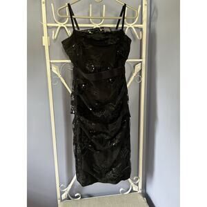 Eva Mendes Black Tule Dress Sparkling Embroided Size 2 Party Night Out Wedding