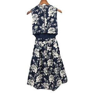Eva Mendes Cut Out Dress Size 4 Crinkle Textured Floral Stretch Umbrella Blue