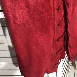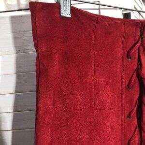 Eva Mendes vintage Y2K faux suede red pencil skirt with metal zipper detail. Size 4.