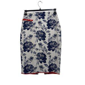 Eva Mendes Floral Blazer SZ 6 & Pencil Skirt SZ 0 Suit Set Off White/Blue/ Lined