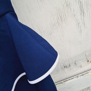 Beautiful new with tags dress. Some photos make it appear more blue but it's navy like the modeled photo. Light boning in the bodice for a nice silouette.