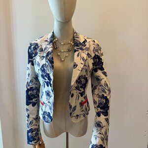 Eva Mendes NY&C Floral Blazer Women’s 4 – White & Navy Blue Rose Print Jacket