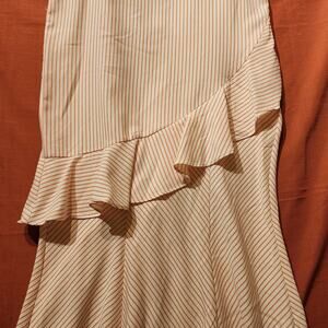 Eva Mendes New York & Co Sz 16 Orange Cream Striped Long Pencil Skirt Ruffle Hem