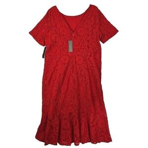 Eva Mendes New York & Co ~Woman Plus Size 2X~Red Short Sleeve Lined Dress Party