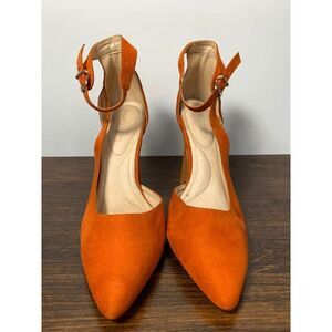 Eva Mendes Women's High Heels Ankle Strap Pointed Toe Suede Fabric Orange 8M