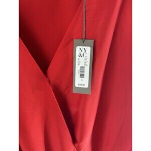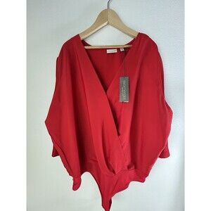 Eva Mendes by New York & Co V-Neck‎ Woman's Vibrant Red Draped Bodysuit Size 1X