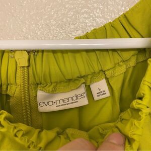 Eva Mendes lime green a line off the shoulder puff sleeve summer Dress boho L