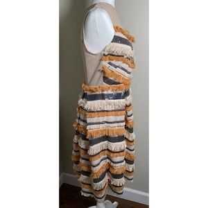 Eva Mendez Dress Orange Woman’s Size 6 Orange Cream Sequin Flapper Style Fringe