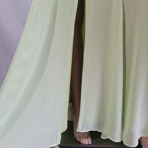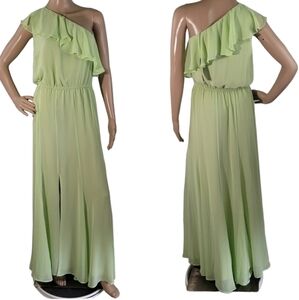 Eva Mendez X NY&C Green One-Shoulder Maxi Dress Sz XS Ruffled Front Slit Brat