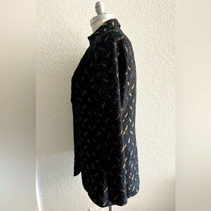 Eva Polini Couture 90’s Womens Blazer textured black and gold feather print Sz 8