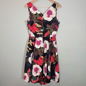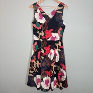 Eva Rose Fit & Flare V-Neck Front & Back Full Skirt Dress-Floral-Women Large
