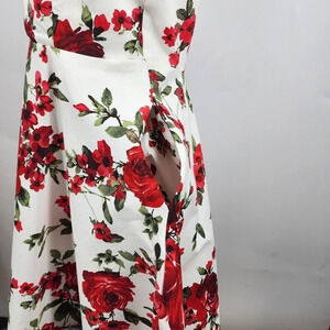 Eva Rose White And Red Rose Floral Fit And Flare Pinup Back-Tie Dress Size M