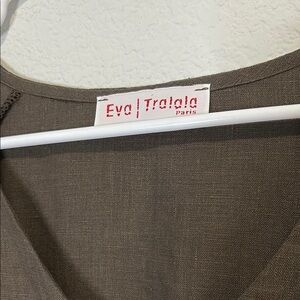 Eva Tralala Paris 100% linen chocolate brown one button closure jacket. Pockets on each hip. Single button closure at chest. please check measurements since these are European sizes - XL.