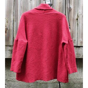 Features include a Boxy Shape, Shawl Collar, Drop Shoulder and Patch Pockets. Composition is lightweight boiled wool, can be hand washed.