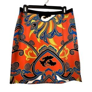 Eva Varro Allover Geometric Printed Orange Blue Mini Skirt Small