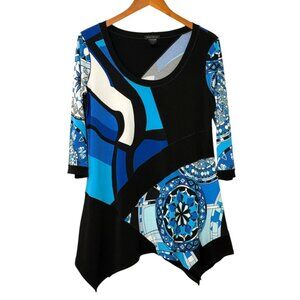 Eva Varro Black Turquoise & White Geometric Design Tunic Top Jersey Knit Size XL