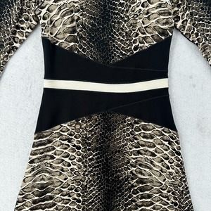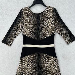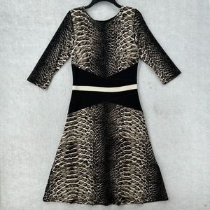 Eva Varro Midi Dress Womens SMALL Snake Reptile Print Stretchy 3/4 Sleeve