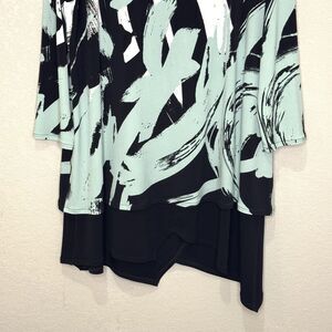 Eva Varro Tunic Top Womens Large Black White Abstract Print Layered Hem 3/4 Sleeve