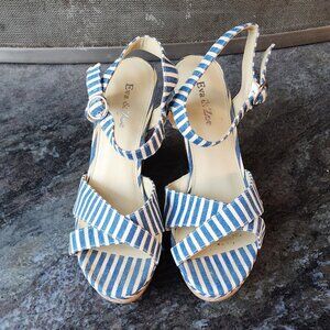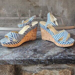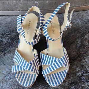 Eva & Zoe Blue/White Striped Sexy 1940s Cork Wedge Sandals Size 8