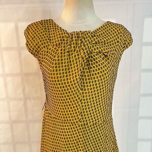 Eva Franco yellow textured print silk blend business casual dress size 10