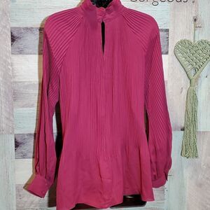 Eva Longoria Plum Pleated High Neck Career Blouse Long Sleeve, Size M