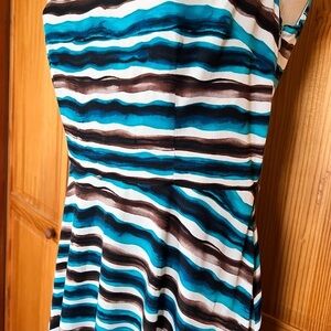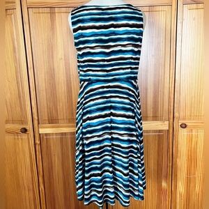 Evan Picone 10 Sleevless Fit & Flare Neutral Blue Brown Scoopneck Dress