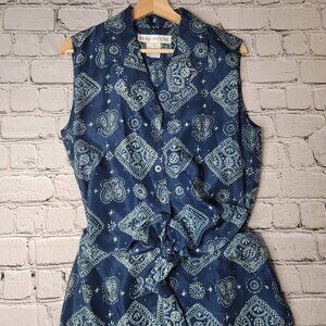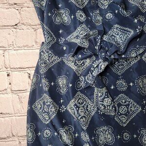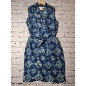 Evan Picone 100% Silk Blue Geometric Print Cutout Middle Collared Dress Size 10