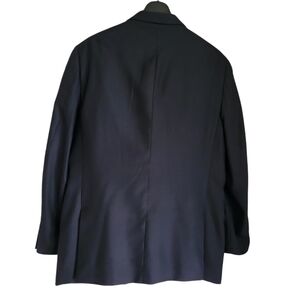 The suit is made from a blend of polyester and rayon, and features inner pockets for added convenience. It's available in a size 42R, with a waist size of 34 inches and an inseam of 31 inches. The suit is perfect for all seasons, whether you're looking for a winter, summer, fall, or spring outfit. With its solid pattern and blue color, it's a versatile addition to any wardrobe.