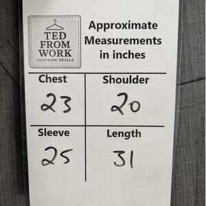 • Size 46R – Chest 23", Shoulder 20", Sleeve 25", Length 31"