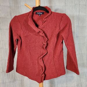 Evan Picone $95 Medium Pet Vintage Rust Red 100% Wool Short Ruffle Snap Blazer