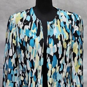 Evan Picone Abstract Open Front Princess Cut Jacket Turquoise Size 12