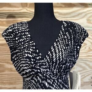 Evan Picone Babydoll Midi Dress Black Size 8 Artsy Print Resort Y2K Stretch