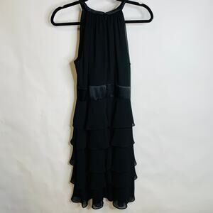 Evan Picone Black High Neck A Line Dress Tiered Ruffles Sz 10