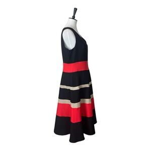 Evan Picone Black Label Dres A-line V-neck Black Red Colorblock Women’s Size 12