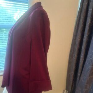 Evan Picone Black Label Wine 3/4 sleeves full length lapel open blazer, size 18