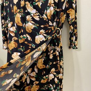 Evan Picone Black Label Women’s 16 Floral Print Faux Wrap Dress some Stretch